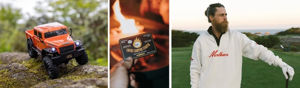 - Gear for Outdoor Recreation: For nature enthusiasts, items to explore are Yardsale Magnetic Ski Poles, RC Crawlers, a Calpak backpack, a custom bike to order from SSS, natural fire starter (made from recycled coffee) from Morii Outdoor, Recess pickleball paddles, and trend-forward golf wear from Malbon Golf. Yeti also remains a classic, and Kanga Coolers offer an iceless approach to coolers.